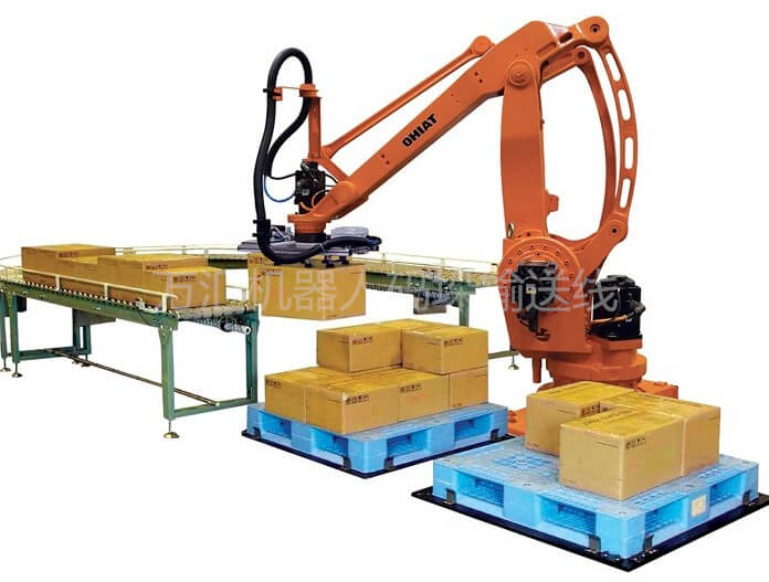 機(jī)器人碼垛系統(tǒng)是一種智能高效的碼垛機(jī)。隨著工業(yè)芯片技術(shù)上的發(fā)展及AI技術(shù)的進(jìn)步,機(jī)器人的智能性已經(jīng)代替人類(lèi)的初步勞動(dòng),機(jī)器人碼垛機(jī)構(gòu)靈活輕便,是工廠(chǎng)的明智選擇